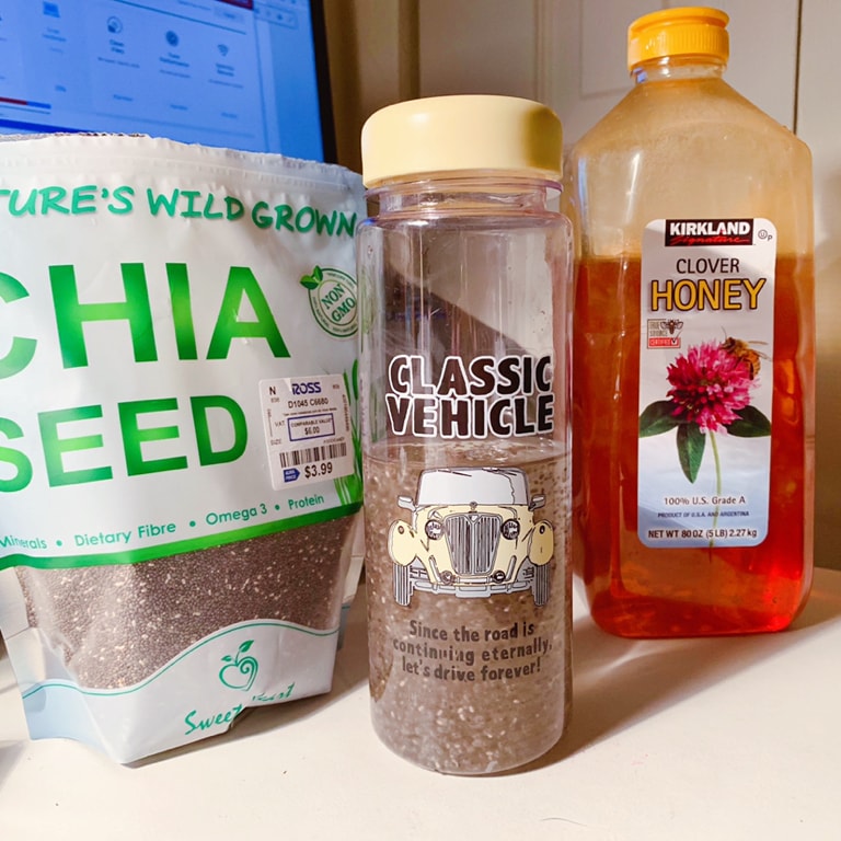 Ingredients: a cup of warm water, two spoons of honey, one level spoon of chia seeds