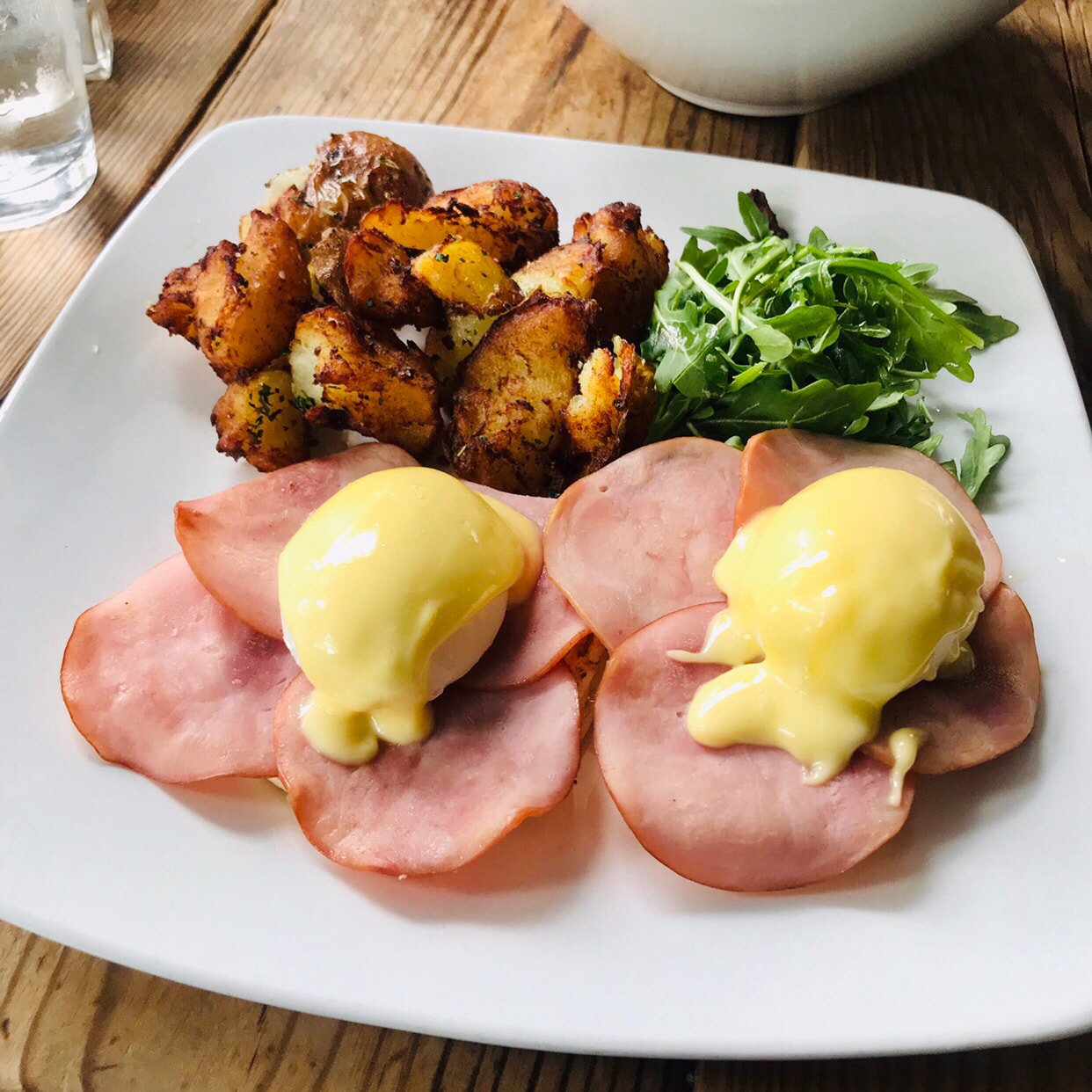 1️⃣真的好喜欢吃benedict🍳 下面是烤的面包 放上火腿 再放上流心的蛋🥚配上上面的酱真的超赞👍旁边的烤土豆也超级解腻