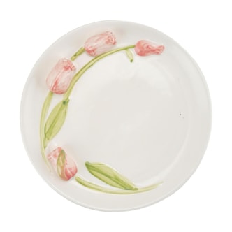 チューリップデザインのエレガントな陶器プレート 8インチ