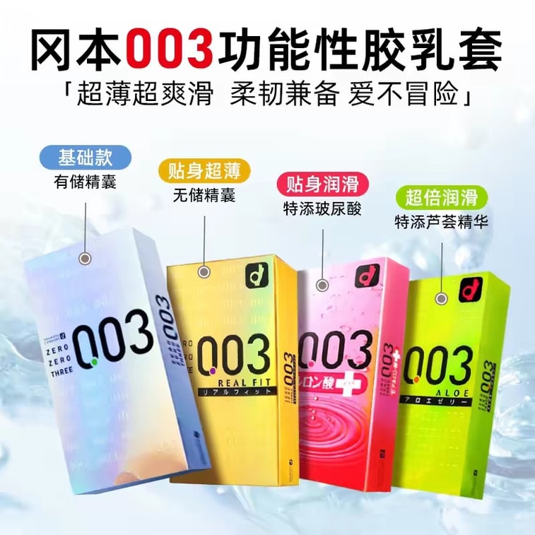 [중국 직배송] 오카모토 003 시리즈 천연 알로에 베라 에센스 초박형 콘돔 (10개입) - 여성들이 선호하는 성인용품