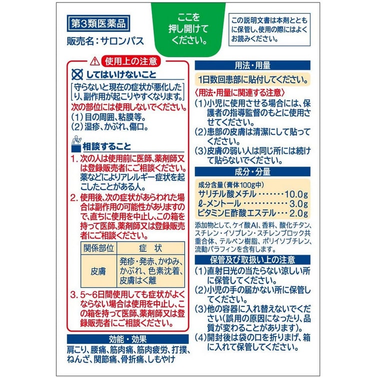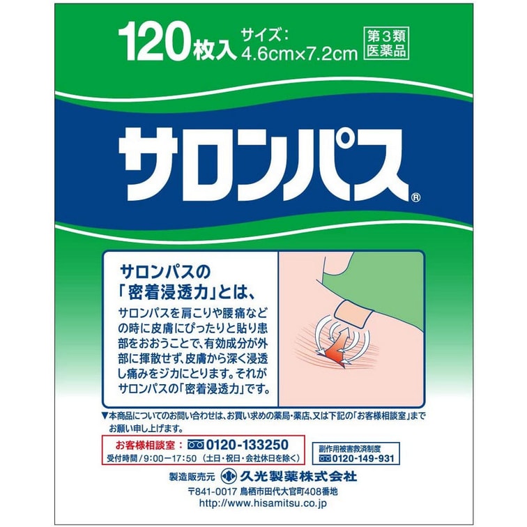 [일본 직송] 히사미츠제약 살롱파스 반창고 허리 및 어깨 통증 완화 반창고 120매