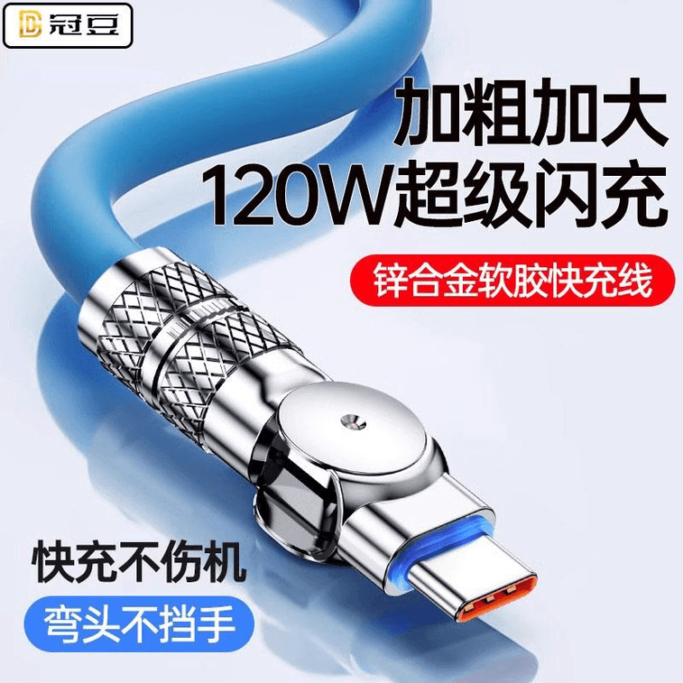 [중국에서 온 다이렉트 메일] 120w 회전 데이터 케이블 540도 회전 머리 팔꿈치 초고속 충전 Apple 휴대폰에 적합 고속 360 충전기 케이블 하늘색 * 1개