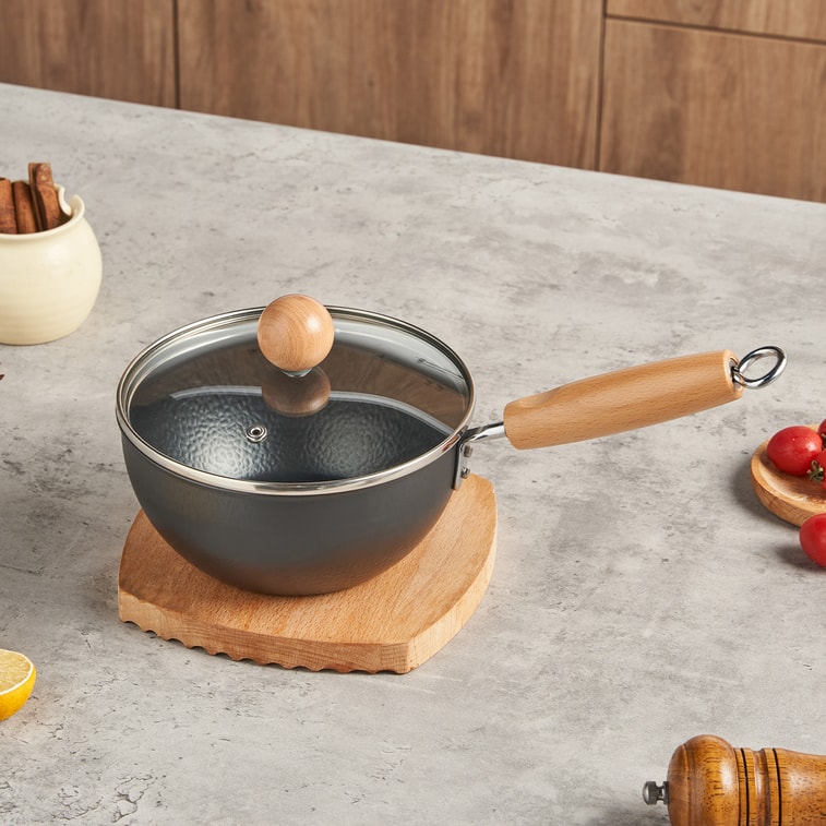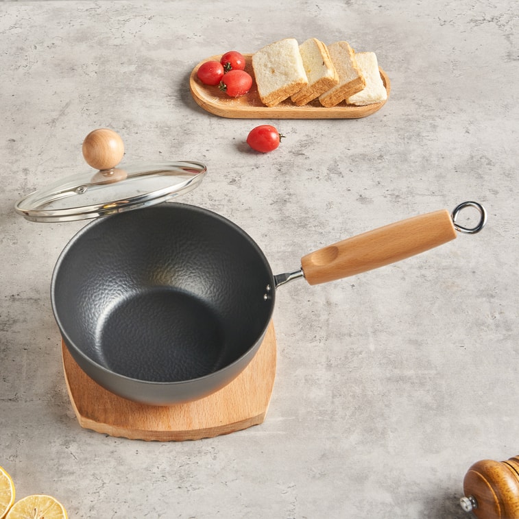 왕위안지 [콤팩트, 빠른 가열, 넘침 방지, 따르기 쉬움] 다룽예팡 서브 브랜드 18cm 무광택 철제 우유 냄비, 유키히라 냄비, 코팅 없음, 정제 철제 소재, 유리 뚜껑 포함 - 1인 가구에 적합