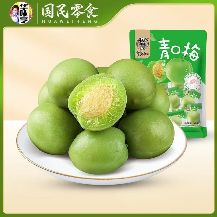 화웨이헝 청매실 [2팩 묶음] 아삭한 청매실, 절인 매실, 매실과일, 건과일, 설탕에 절인 과일, 스낵 120g*2팩 (총 240g) [신형 및 구형 포장이 번갈아 발송됩니다]