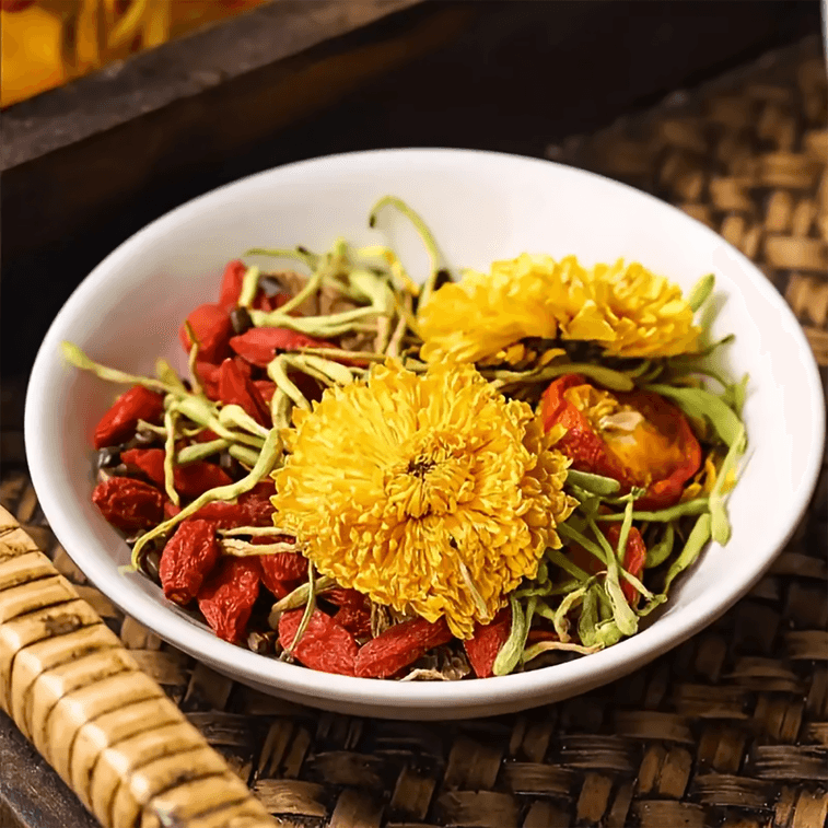 Seelo US 재고 200g 인동덩굴차, 국화, 구기자, 계피씨드차 (야간 건강, 간 정화, 열 완화 및 해독)