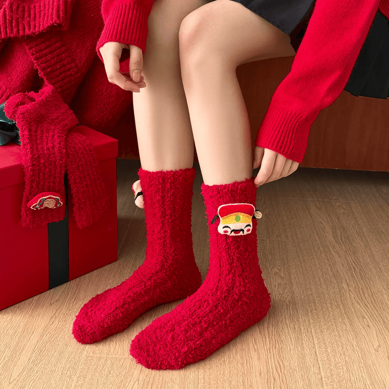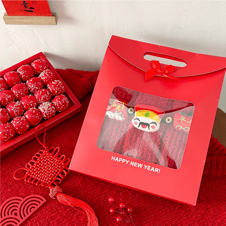 2026년 말띠 해 빨간 양말 패션 개성 축제 행운 양말 3켤레