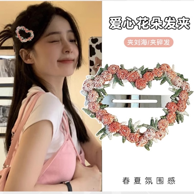 2026 New Bohemian Style 🌸 Pink flower hair clip with explosive sweetness! Love forehead clip+side bangs, a romantic trick for girls with broken hair 💖 1 piece