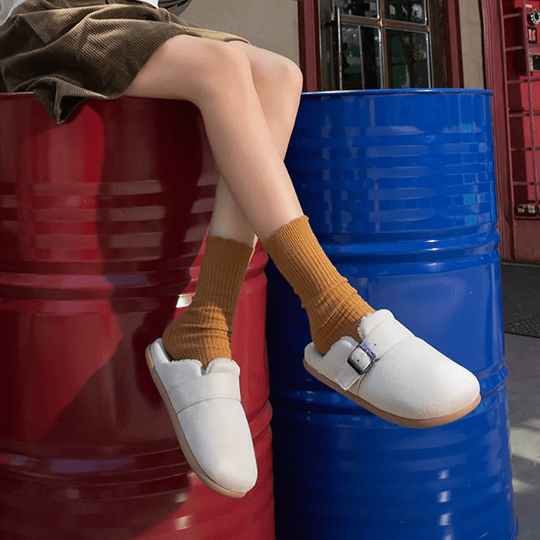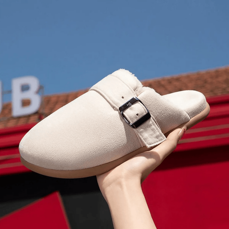 남녀공용 버켄스탁 스타일 면 슬리퍼, 베이지색, 미국 사이즈 7-8, 따뜻하고 미끄럼 방지 기능