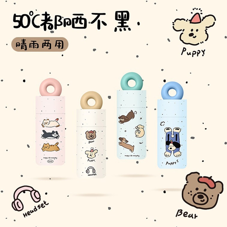 [중국 직배송] HSPM 5단 미니 양산, 컴팩트하고 편리한 햇빛 차단 우산, 하늘색 강아지 디자인