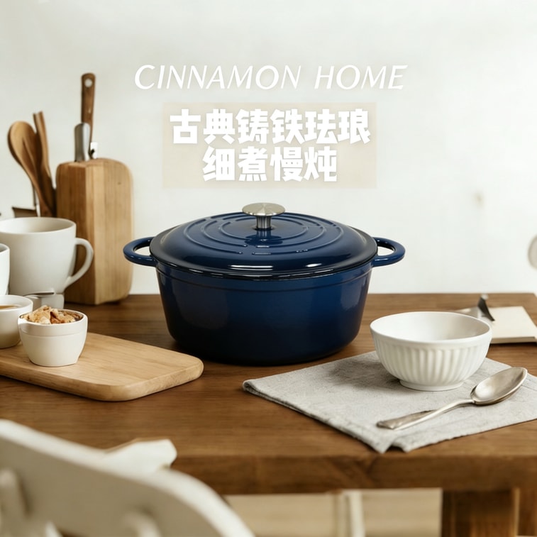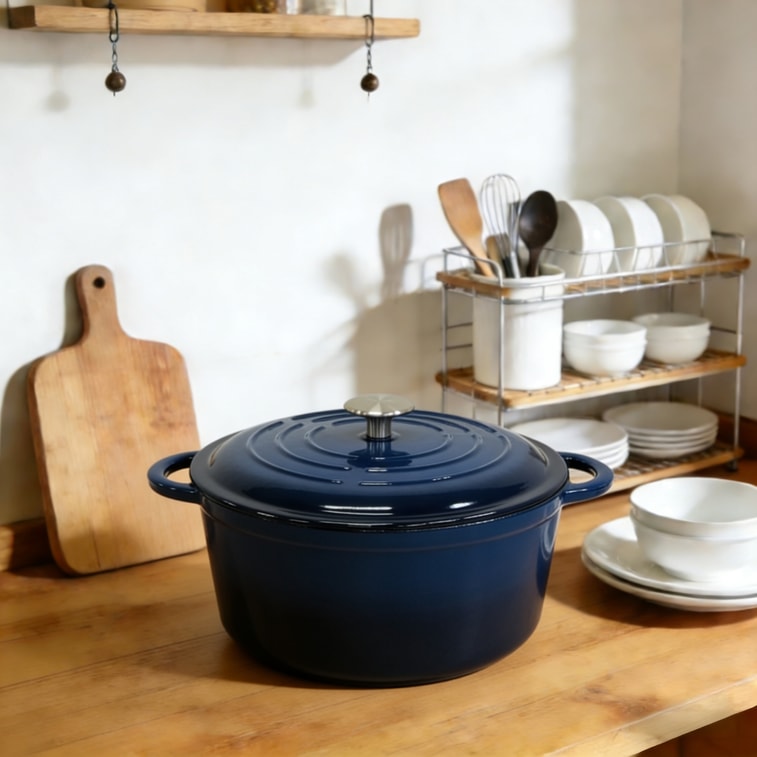 Cinnamon Home 5 Quart Enameled Cast Iron Round Dutch Oven with Lid - Navy