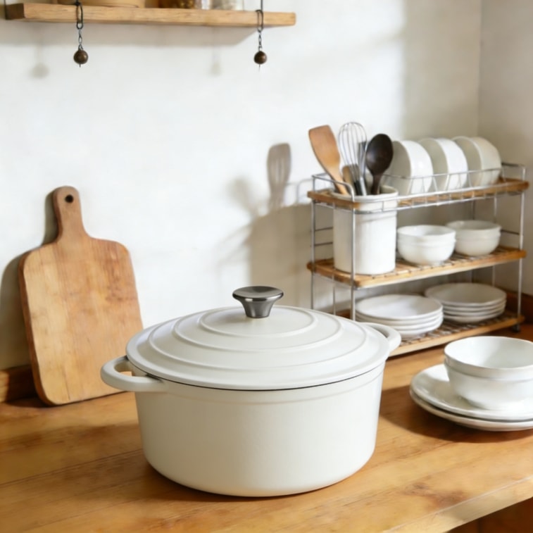 시나몬 홈 에나멜 냄비는 열을 잘 보존하고, 육즙과 풍미를 가두어주며, 약한 압력으로도 조리가 가능합니다. 두껍고 묵직한 본체와 뛰어난 밀폐력으로 재료의 수분, 영양소, 풍미를 그대로 유지하여 본연의 맛을 보존합니다. 이 다용도 냄비는 찜, 스튜, 베이킹, 튀김, 볶음 등 모든 요리에 사용할 수 있습니다. 내구성이 뛰어나고 열전도율이 우수하여 부드러운 스튜부터 폭신한 빵까지 모든 요리를 최상의 맛으로 완성해 줍니다.