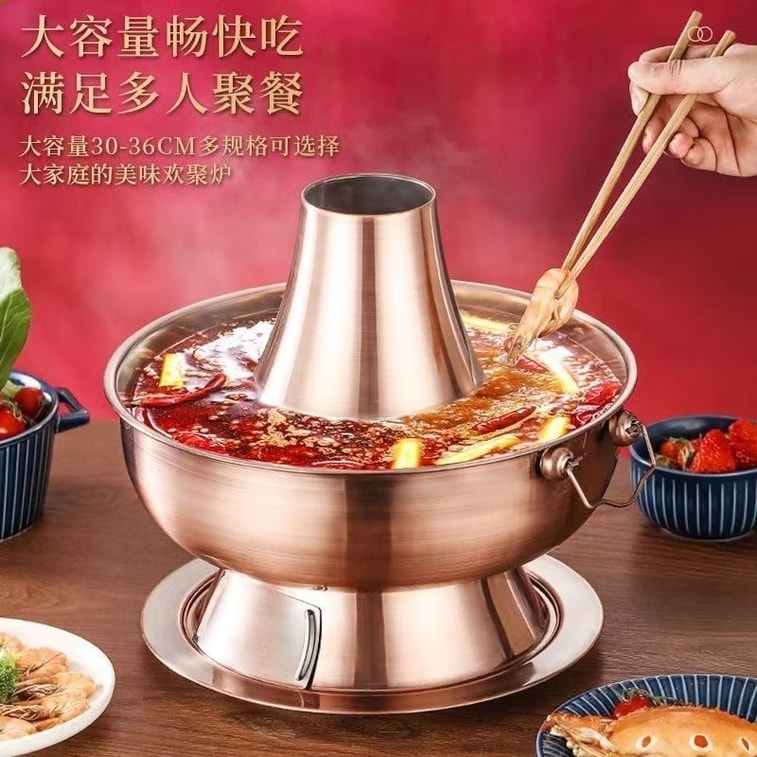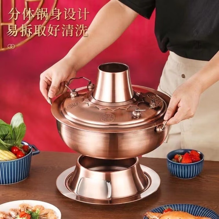 [중국 직송] 정다 올드 베이징 숯불 냄비, 두꺼운 스테인리스 스틸 모조 구리 구식 보라색 구리색 숯불 냄비
