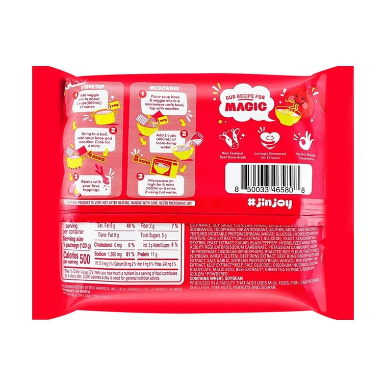 【밸류팩】진라면 - 한국식 인스턴트 라면, 매운맛, 6팩* 4.23oz