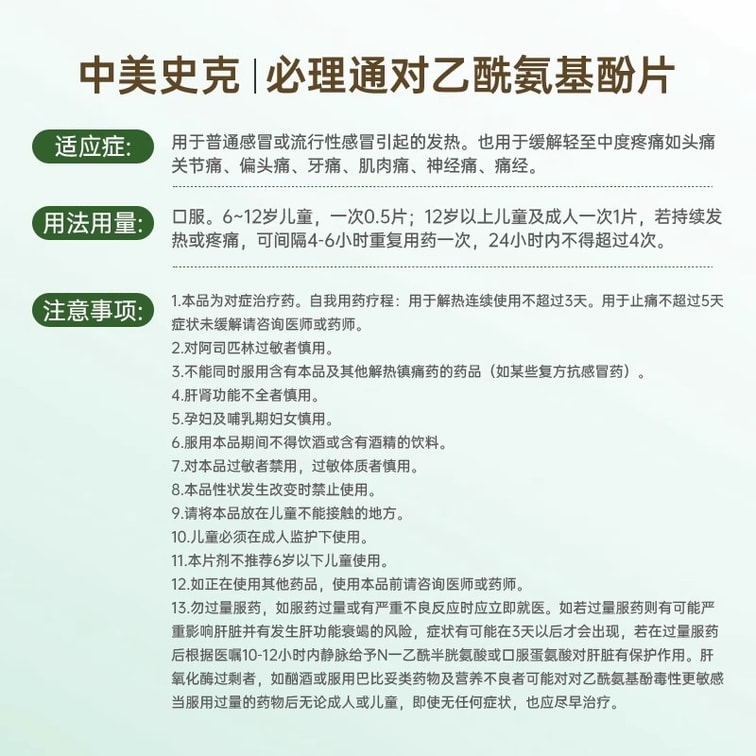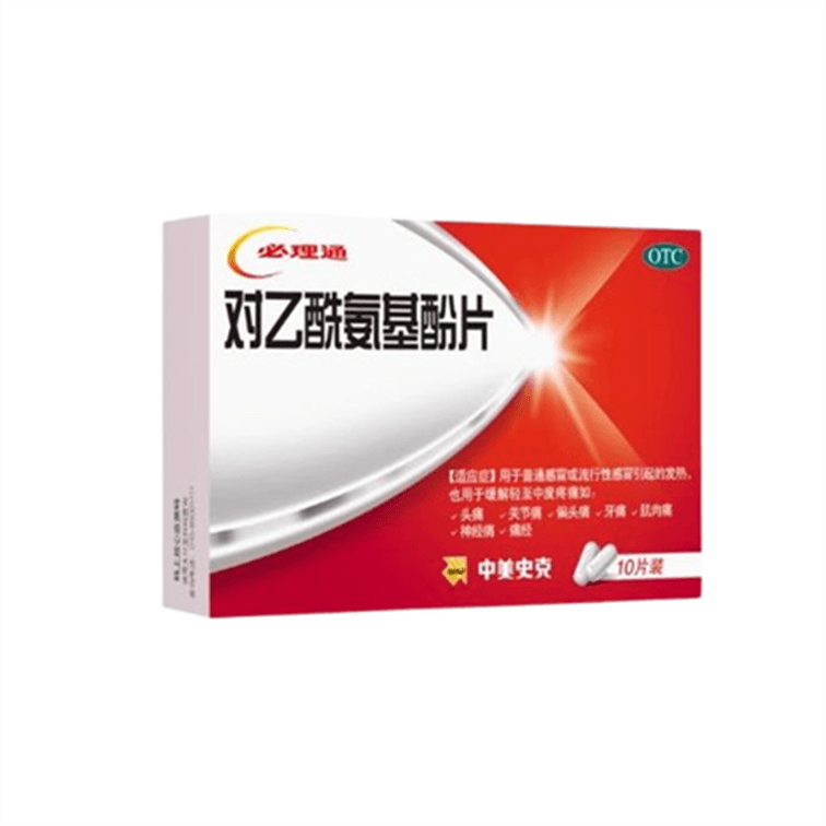 Acetaminophen tablets Cold medicine Headache and fever 0.5g*10 tablets per box