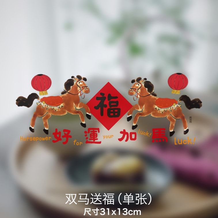 [중국 직배송] 오리지널 라이프스타일 귀여운 말띠 해 정전기 접착 스티커, 복을 가져다주는 두 마리 말 / 시트당 31*13cm, 춘절 장식, 2026년 새해, 창의적인 핫 스탬핑, 유리창 및 문 장식용 스티커