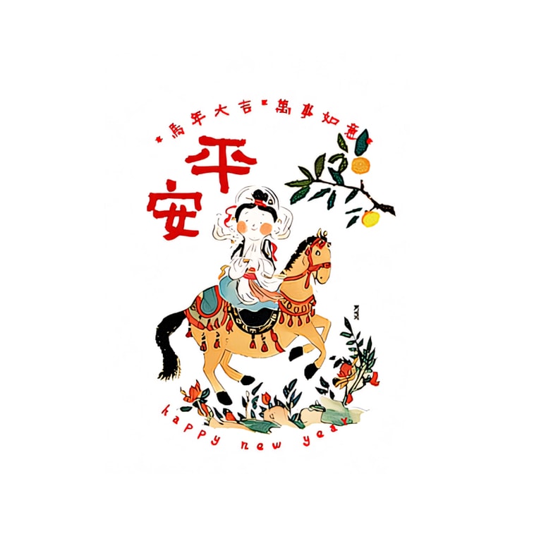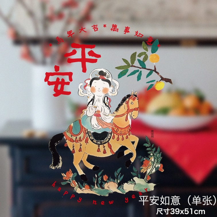 [중국 직배송] 독창적인 라이프스타일 귀여운 말띠 해 정전기 스티커, 평화와 행운 / 시트당 39*51cm, 춘절 장식, 2026년 새해, 창의적인 핫 스탬핑, 유리창 및 문 스티커