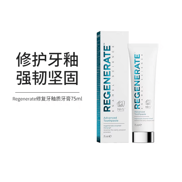 특허받은 포뮬러로 치아 법랑질을 깊이 복구하고, 시린 이 증상을 완화하며, 미세 입자 미백제를 함유한 리제너레이트 치약. 75ml