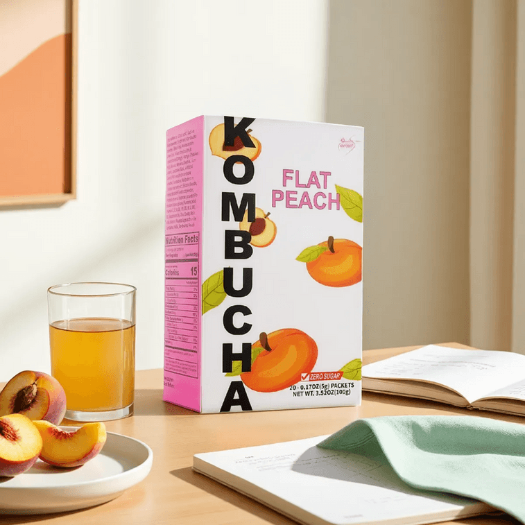 프로바이오틱 콤부차, 플랫 복숭아 맛, 3.52oz [설탕 0 저칼로리] [건강한 발효 운동]
