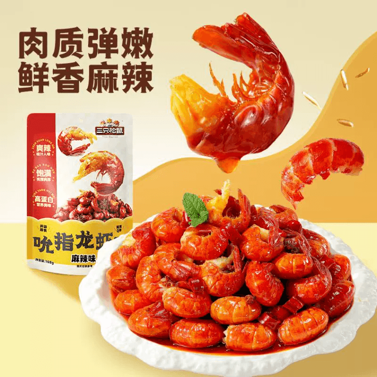 THREE SQUIRRELS 쓰리 스쿼럴스 핑거-리킹 랍스터 테일, 신선하고 맛있는 조리된 새우볼과 꼬리, 바로 드실 수 있도록 개별 포장된 108g*1봉지 (약 10개의 작은 봉지) | Yami