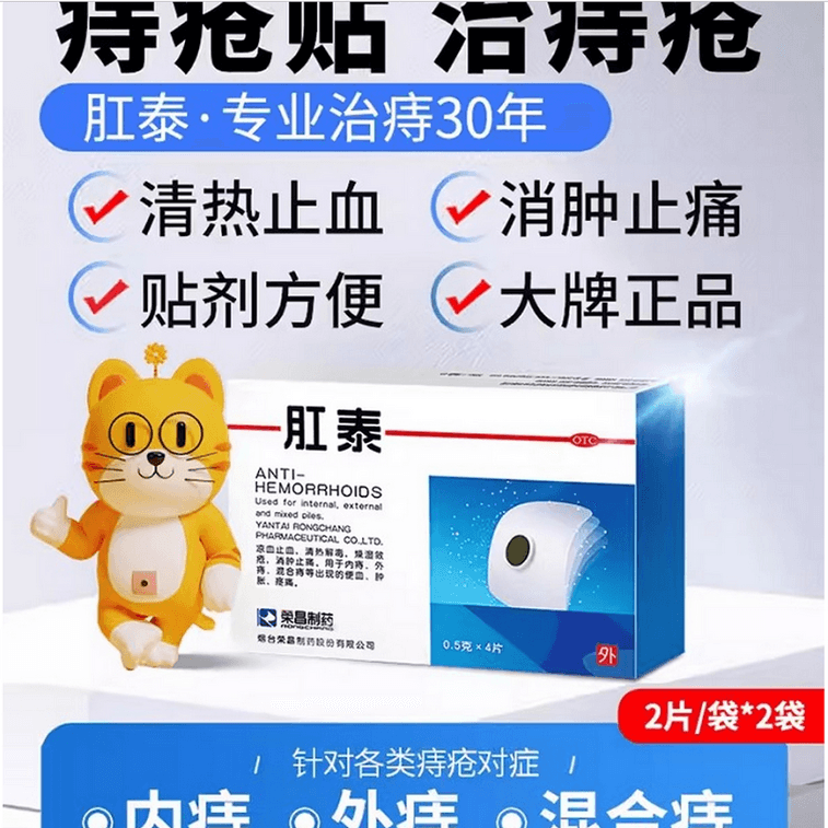 롱창 강타이 치질 패치 - 내치질, 외치질, 혼합치질, 출혈, 부기, 저림 증상 완화 패치; 배꼽 패치; 4개입/상자