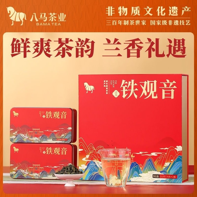 [중국 직배송] 바마차공업 안시 철관음차, 정통 난초향, 가볍게 볶은 우롱차, 선물 상자 252g [2상자]