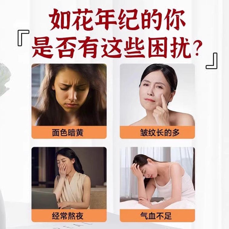 | 우려사항 | 안색이 창백하고, 밤늦게까지 깨어 있는 경우가 많으며, 기와 혈이 부족하고, 반점과 여드름이 있습니다. |