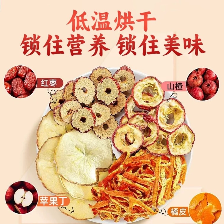엄선된 오렌지 껍질, 산사나무 열매, 대추, 사과 조각을 넣은 순한 프리미엄 제품입니다.