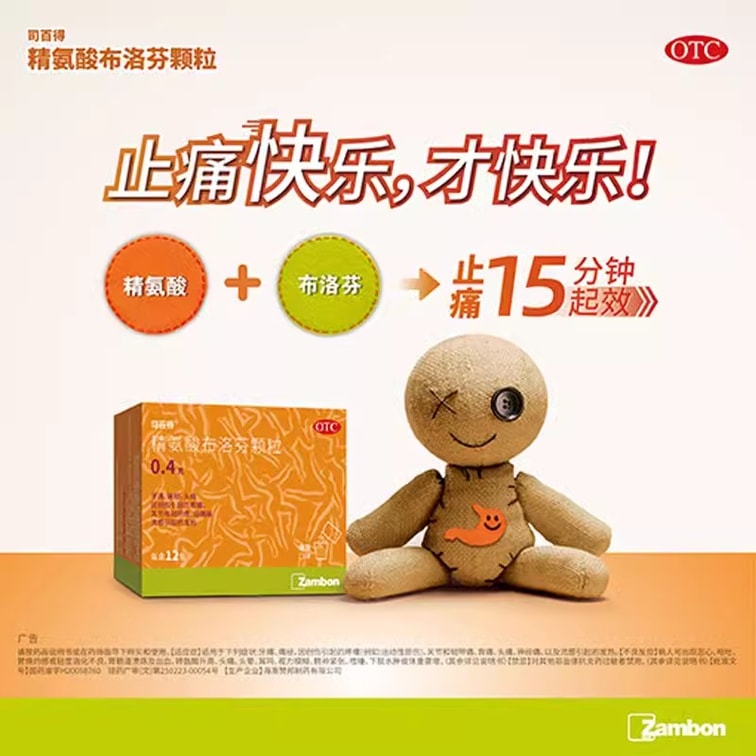 Arginine Ibuprofen Granules Cold Medicine Fever Relief Toothache Medicine 0.4g*12 Bags X 1 Box