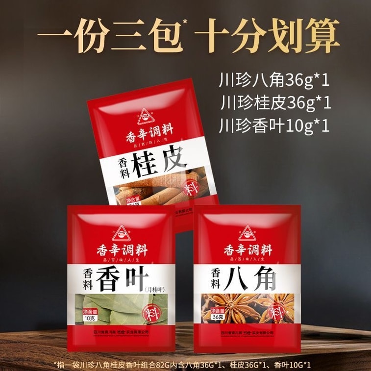 [중국 직배송] 천진 정통 조림 양념, 3개입 82g (팔각, 월계수잎, 계피, 혼합 팔각) 가정용