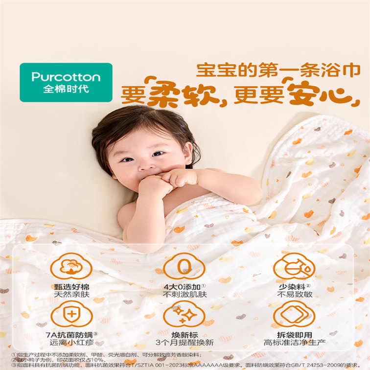 【중국 직송】 코튼타임즈 베이비 거즈 목욕 타월 순면 목욕 타월 슈퍼 소프트 흡수성 스와들 옐로우 덕 115cm*115cm