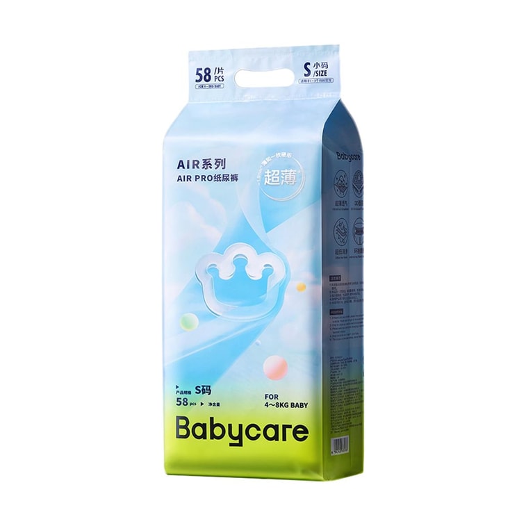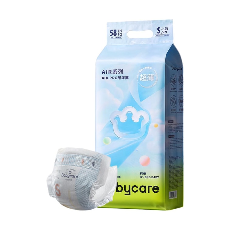 BC 베이비케어 에어 프로 베이비 기저귀 초박형 통기성 허리 스티커 기저귀 S 4-8KG-58개
