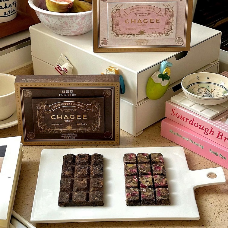 반장 푸얼차 선물 세트, 익은 차, 작은 사각형 벽돌 압축 차 1.94온스 【차 선물 세트】