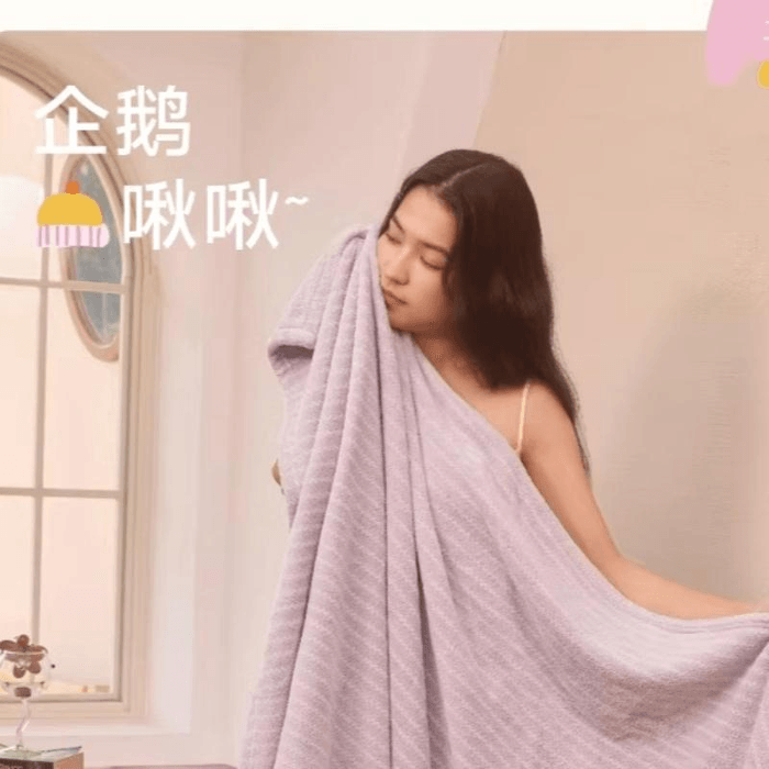[중국 직배송] 산리 항균 및 진드기 방지 목욕 타월, 여성용 대형 사이즈, 산호 양털 소재, 뛰어난 흡수력, 타로 핑크 + 벚꽃 핑크, 70*140cm*2개입 | Yami
