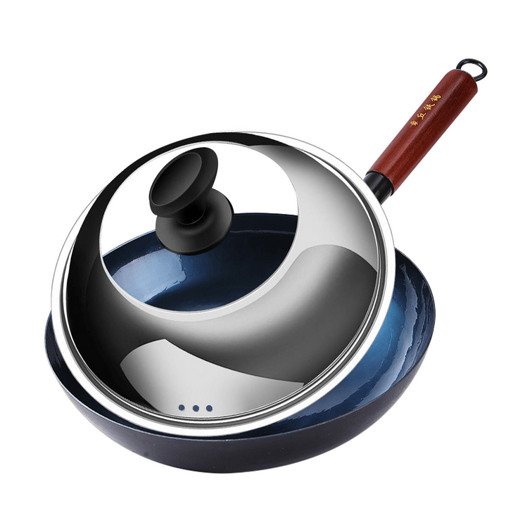 스테인리스 스틸 뚜껑이 달린 철제 웍 냄비, 13.38인치