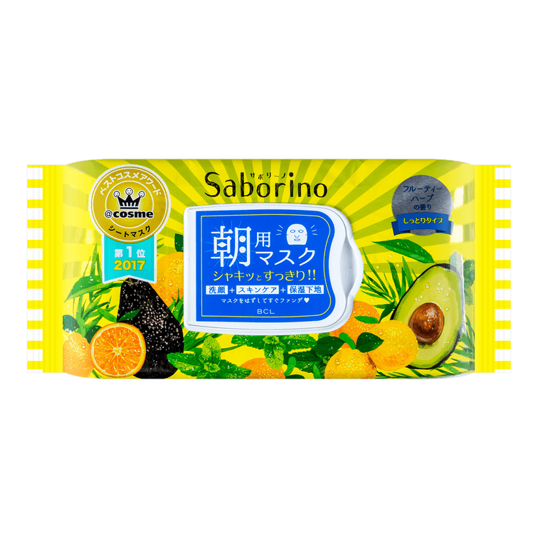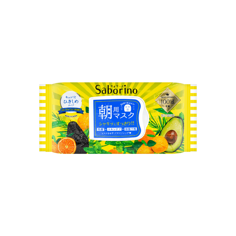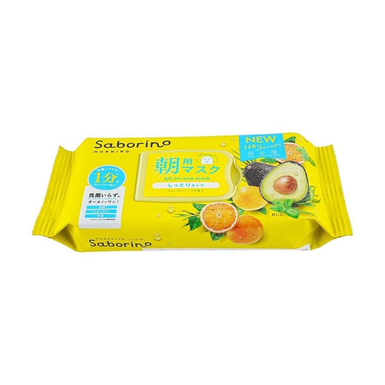 BCL Saborino Morning Face Sheet Mask is a face sheet mask that offers cleansed, tightened and refreshed skin. The quick yet effective, 60-second mask is ideal for use in the morning to reduce any puffiness. The formula contains apple fruit acid, peppermint extract, cucumber extract, tea tree leaf oil, grapefruit leaf oil, collagen, hyaluronic acid, orange oil, avocado extract and honey. This special care face mask gives you 3-in-1 performance from cleansing, skincare, and primer (base). The jumbo size contains as many as 32 sheets with 304ml beauty essence inside. It contains 10 different moisture ingredients, includes hyaluronic acid (HA), honey, apple acid, collagen, orange oil, grapefruit fruit peel oil, and other fruity essences. Simply leave the mask for 1 minute for a quick skin nourishment after waking up.