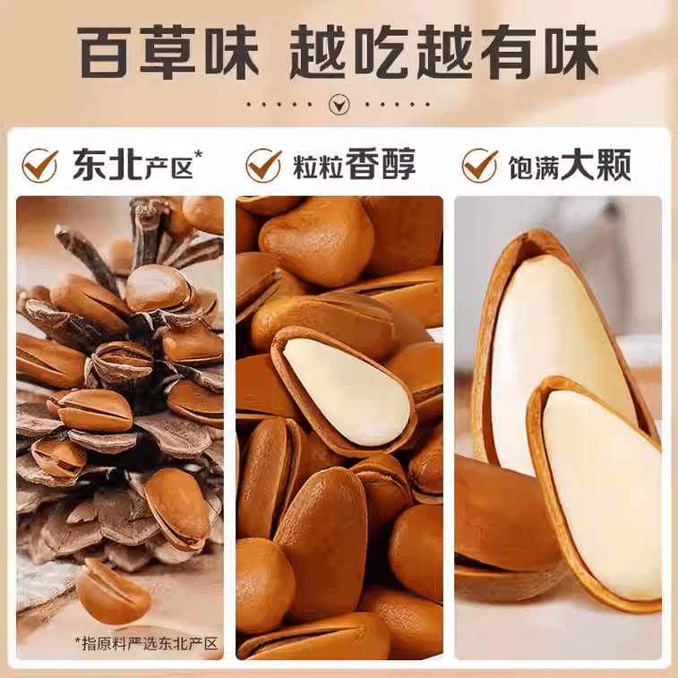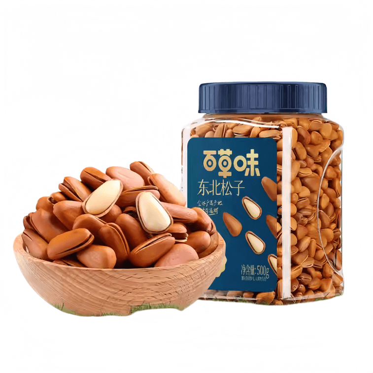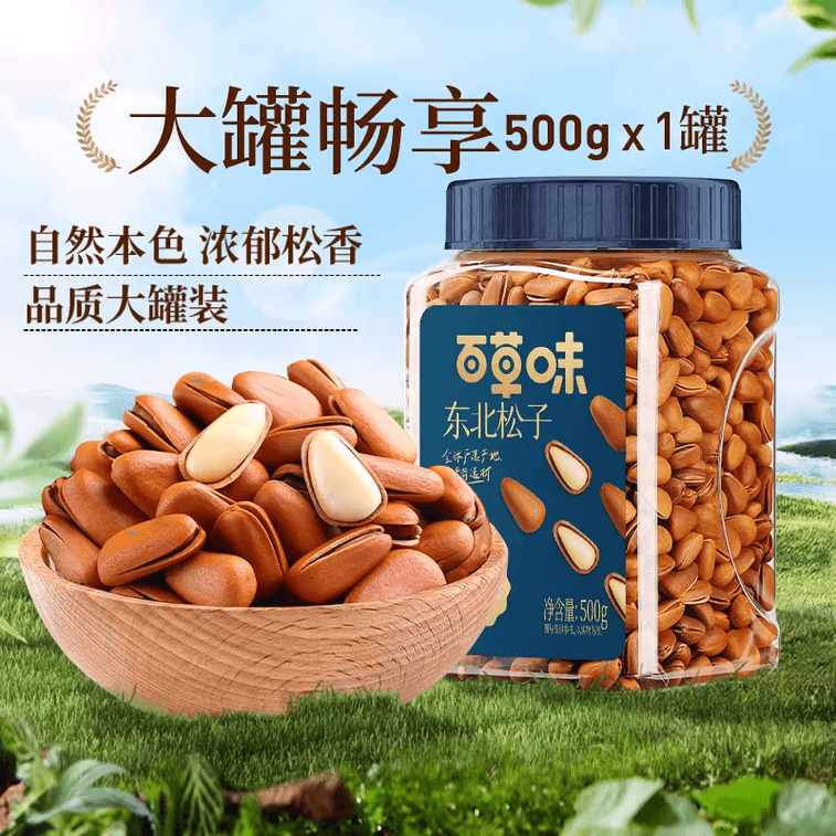 [중국 직배송] 바이차오웨이 동북 잣, 굵은 입자, 손으로 껍질을 벗긴 건과일, 스낵, 500g*1캔 | Yami