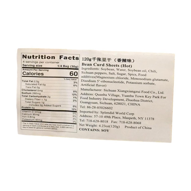 매콤한 두부 시트, 4.23온스