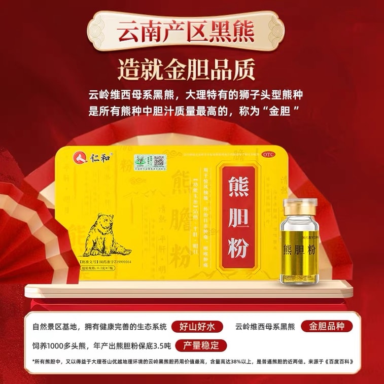 [중국 직송] 런허베어 담즙분말 간보호 및 간보호제(황금담낭등급) 음주 및 밤샘 후 간과 인후통 완화 (0.2g x 6병/박스)
