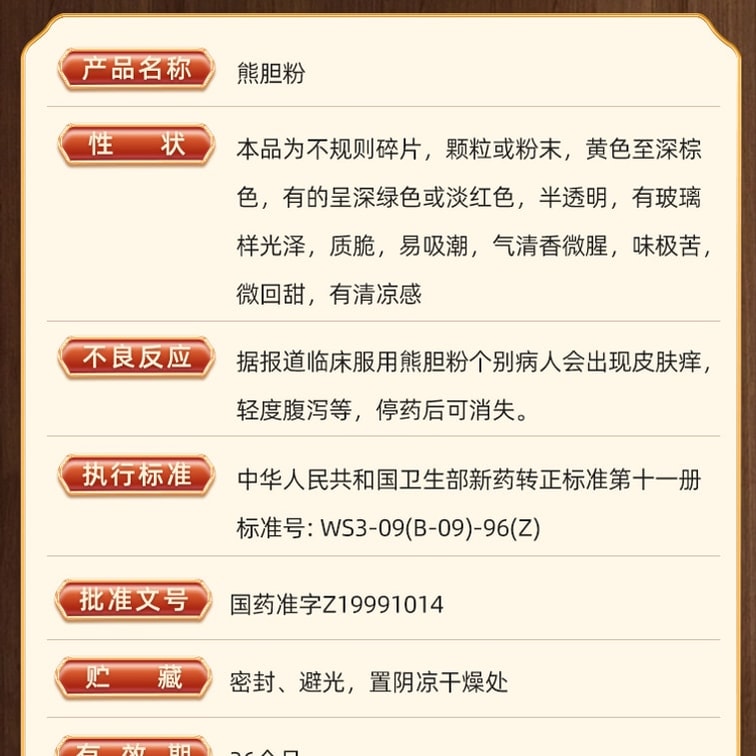 Bear Bile Powder Liver Nourishing and Protecting Liver and Alcohol Relief Medicine 6 bottles/box