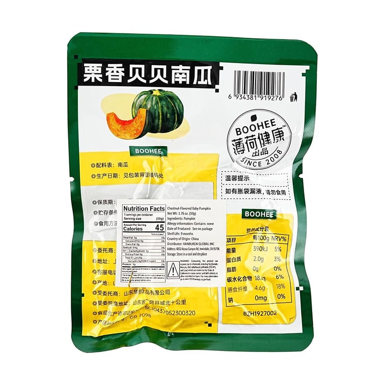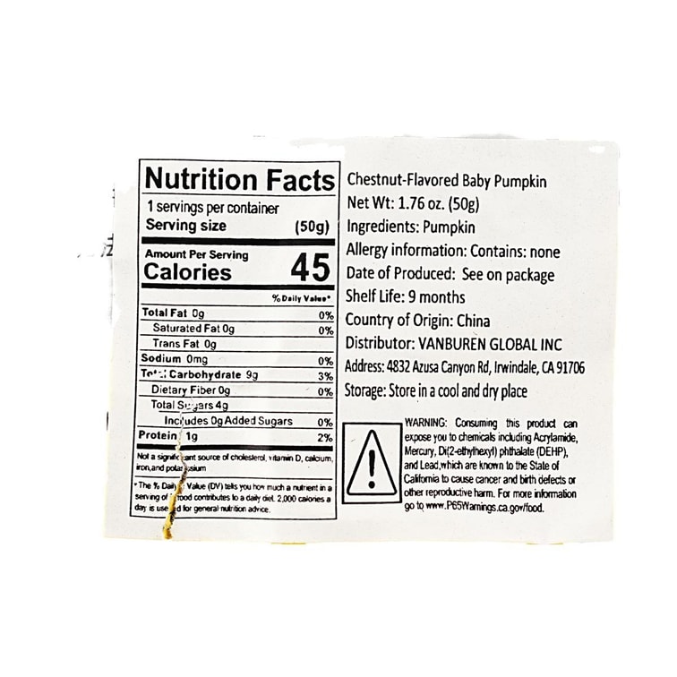 베이비 호박, 즉석 밤맛 호박, 1.8온스【무지방 무첨가 저칼로리, 식이섬유 풍부】