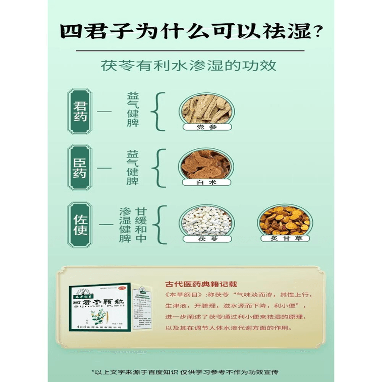 [중국 직배송] 이시진본초강목 사군자충약, 사군환, 탕약(단독처방), 비위 조절, 장 건강 증진, 비장 강화, 습기 제거용 한약 135g*1박스