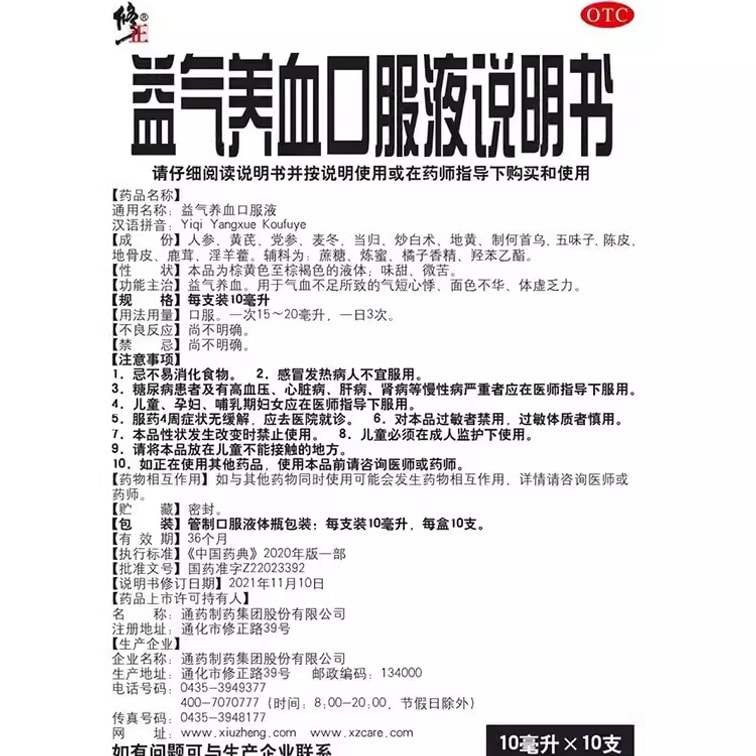 Beneficial Qi And Blood Oral Liquid For Girls To Replenish Qi And Nourish Blood 10Ml*10Pcs/Box