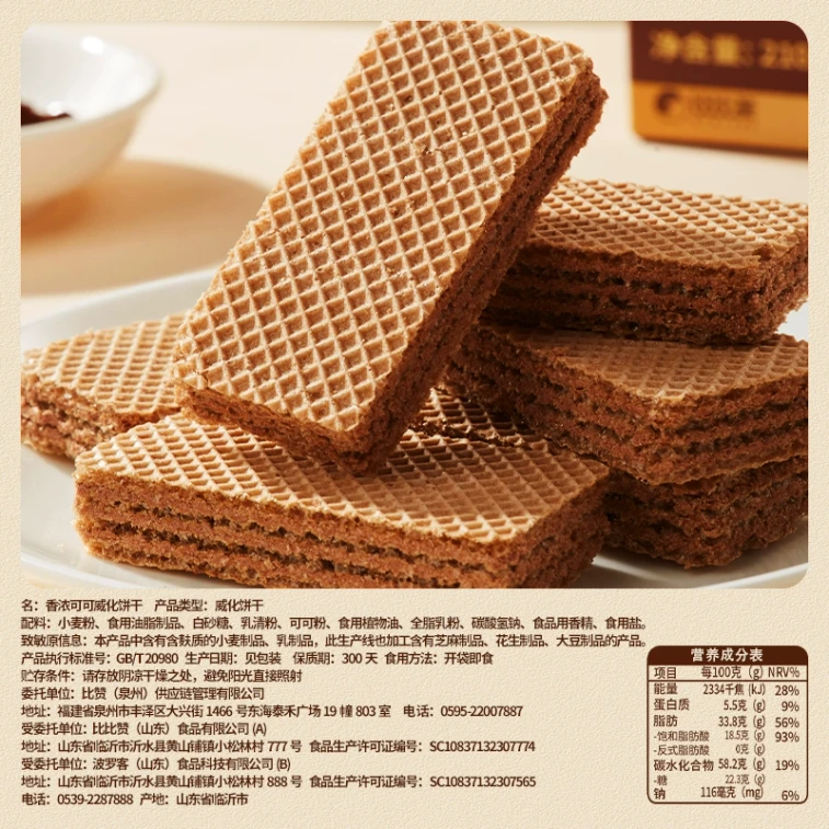 Chocolate wafer meal replacement breakfast sandwich cookies, casual snack, 210g/box