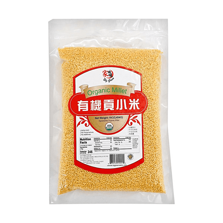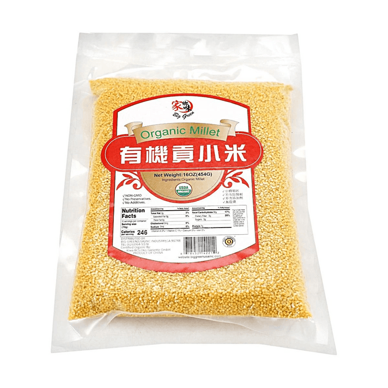 BIG GREEN 유기농 기장은 전통적인 재배 방법을 사용하여 전문가의 세심한 감독하에 생산됩니다. 기장은 일반적인 곡물에 대한 흥미로운 대안일 뿐만 아니라 구리, 망간, 인, 마그네슘을 포함한 매우 중요한 영양소의 좋은 공급원입니다.