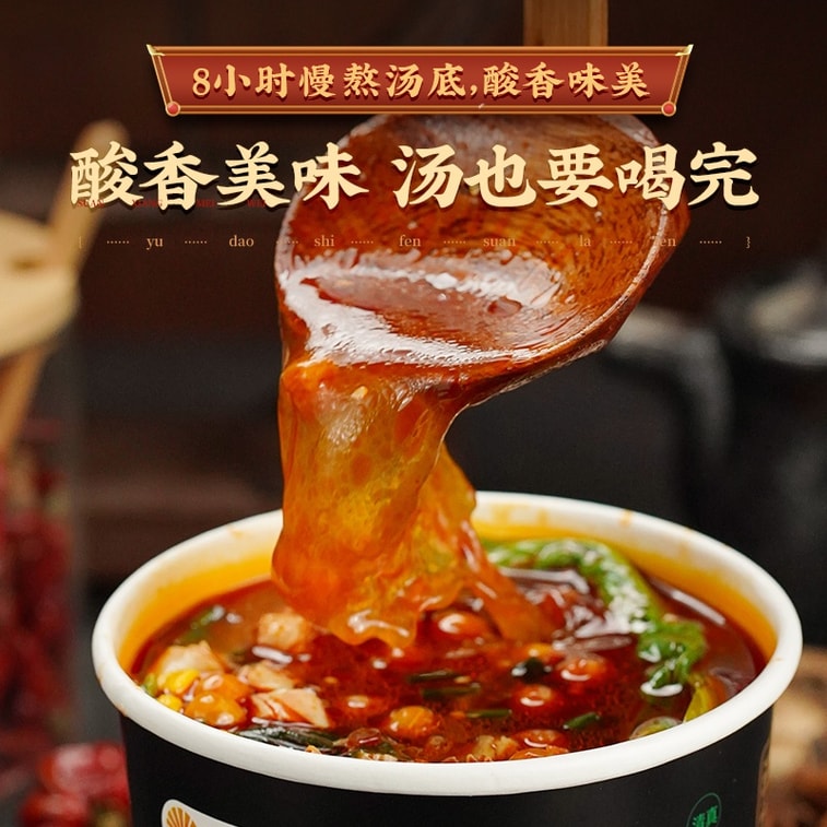 [중국 직송] Yu Dao Black Gold Edition 매콤새콤한 신선한 쌀국수 [쫄깃한 고구마 국수 베이스] 진하고 새콤한 맛, 즉석 조리 및 섭취, 편리한 아침 식사 또는 야식, 248g*4팩