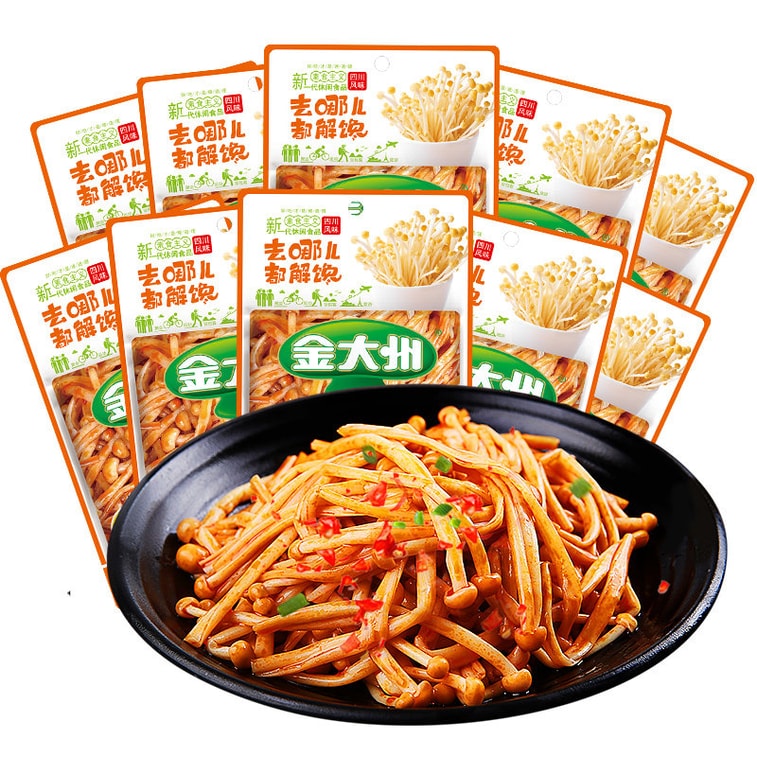 [중국 직배송] 진다저우 팽이버섯 스낵, 채식 버섯 스낵, 매콤한 조리식품, 식욕을 돋우는 간편 반찬, 300g (15g/20봉지)