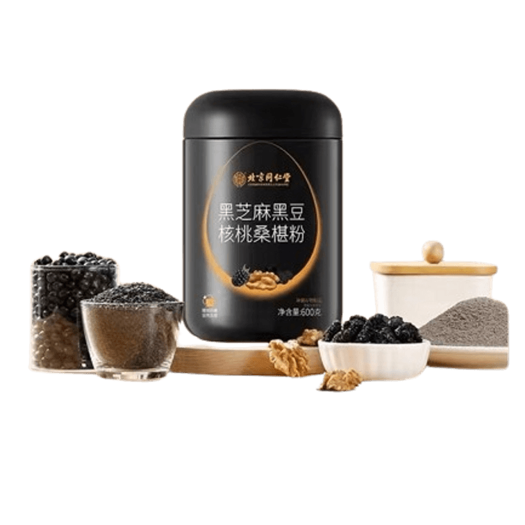 [중국에서 직접 우편] 베이징 통런탕 검은 참깨 페이스트 호두 검은콩 뽕가루 검은 참깨 검은콩 호두 뽕가루 비영양성 모발 성장 식사 대체품 충만 식품 5가지 검은 가루 600g