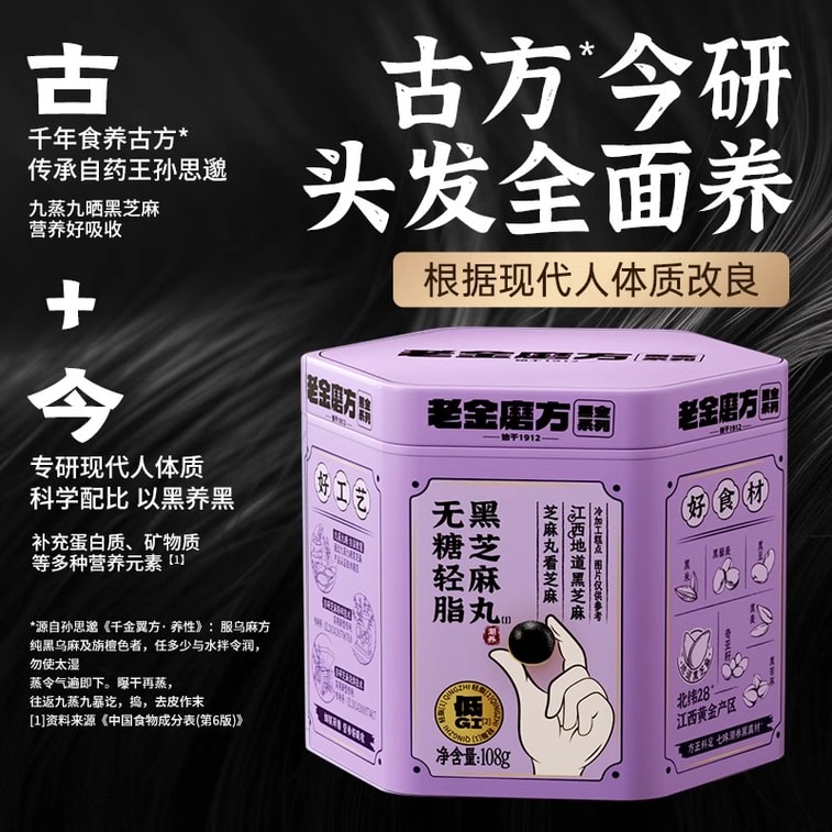 [중국 직송] 노진모방 저GI 검은깨 알약, 임산부를 위한 무설탕 간식, 9번 쪄서 햇볕에 말린 것, 뽕과 구기자 함유, 가을과 겨울 영양 토닉, 108g