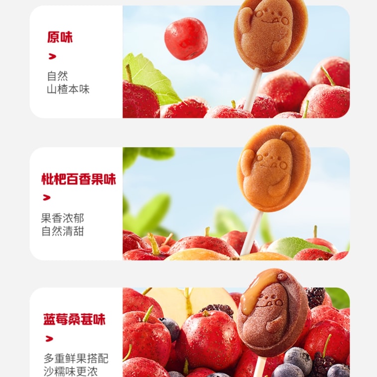 중국 직송: Ying's 블루베리 멀베리 호손 롤리팝, 무설탕 [트리플 애피타이저 포뮬러, 박스당 63g]