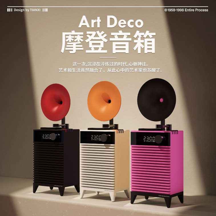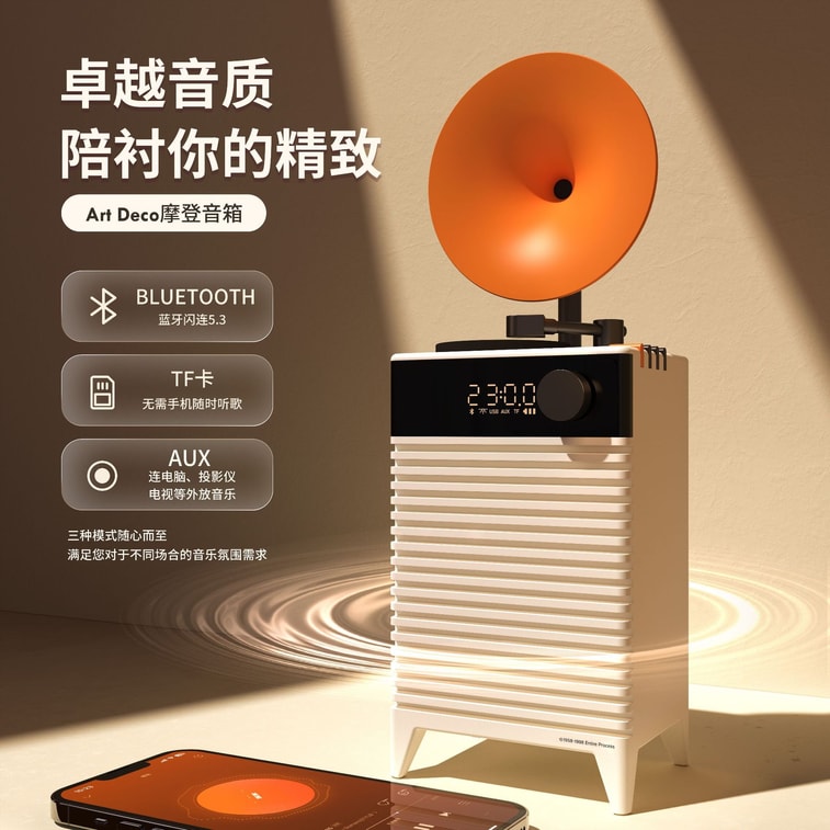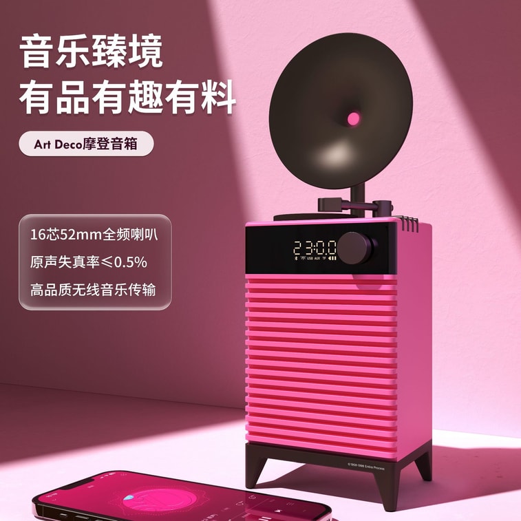 [중국 직배송] 홀리헤요 레트로 모던 아르데코 블루투스 스피커, 블루투스 5.3 + 시계 + 무드 조명, 뮤즈 핑크, 1개